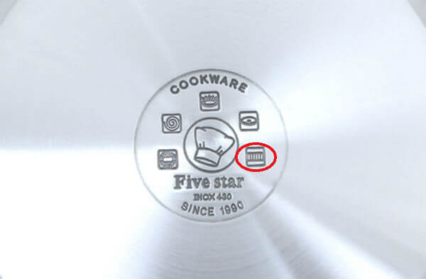 Nếu nhà sản xuất ký hiệu thông qua biểu tượng thì bạn sẽ thấy một hình lò xo đóng khung trong hình chữ nhật hoặc hình tròn được khắc trên đáy nồi, ký hiệu đó là sản phẩm dùng được trên bếp từ.