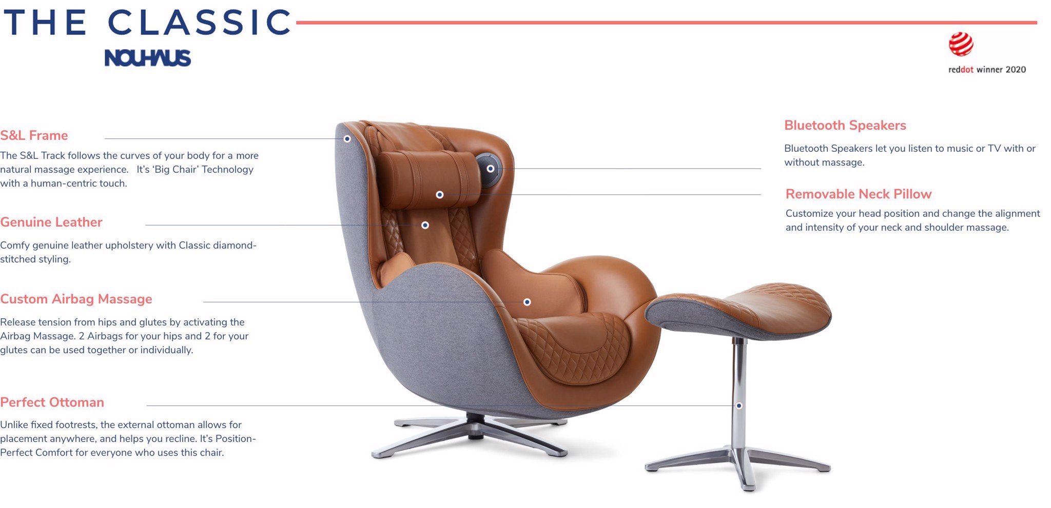 Thời đại của những chiếc ghế massage ngoại hình khổng lồ cuối cùng đã đến hồi kỷ Jura. Bởi vì Ghế massage cổ điển Nouhaus N-0003 đang chiếm lĩnh thế giới massage trị liệu – chưa kể đến thiết kế nội thất, với kích thước nhỏ gọn, thiết kế hiện đại giữa thế kỷ và công nghệ massage mạnh mẽ. Trên thực tế, nó gần đây đã giành được Giải thưởng Red Dot danh giá cho “Chức năng và thẩm mỹ có một không hai”.
