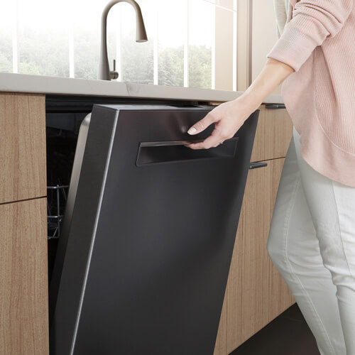 Mở cửa máy rửa bát sau khi đã tắt máy để chuẩn bị reset.