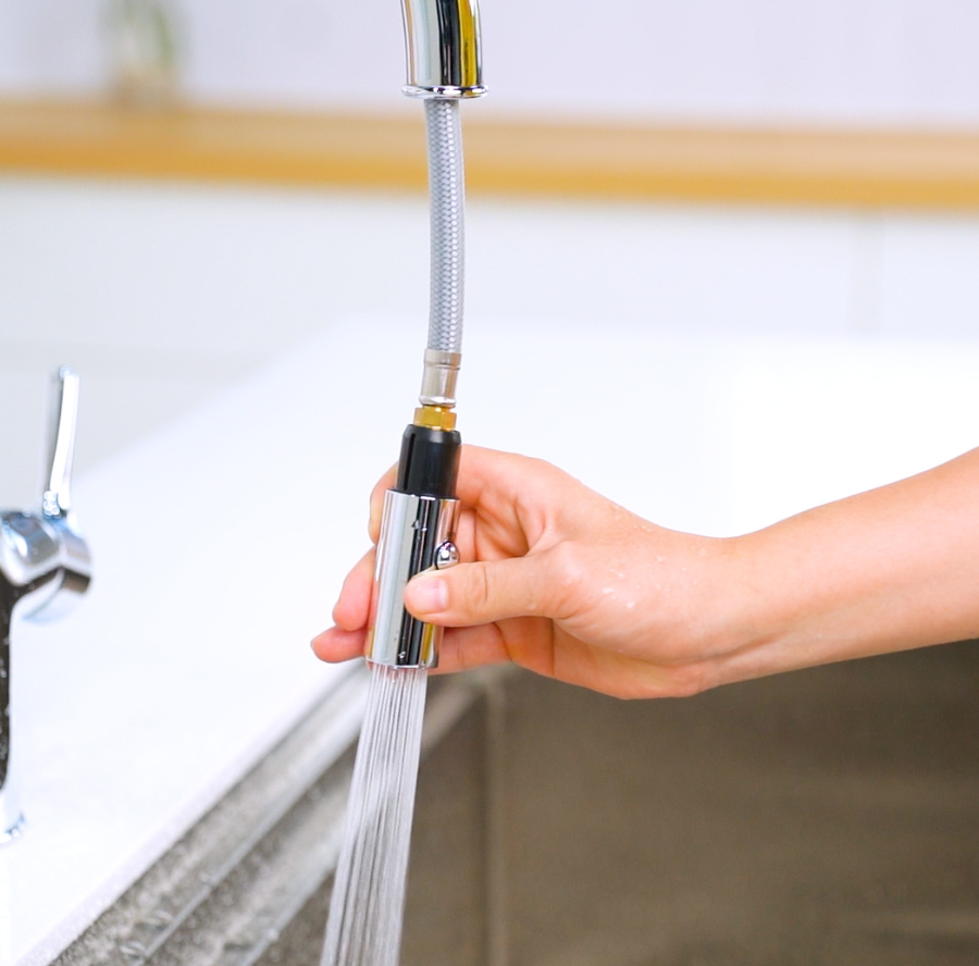 - Tay vòi ngang di chuyển mượt mà, linh hoạt, tối ưu không gian bàn bếp.