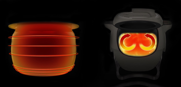 - Cảm ứng nhiệt tự động trong nồi có thể phát hiện lúc nhiệt không đủ để chín thức ăn hoặc nhiệt đang quá cao cho thức ăn, để tự điều chỉnh sao cho thức ăn chín nhanh và tiết kiệm điện nhất.