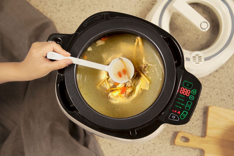 - Nồi có chức năng nấu Sous Vide: lần đầu tiên bạn có thể nấu món như Steak Sous Vide (bít tết nấu chậm) như nhà hàng Michelin hoặc khách sạn 5 sao, chỉ đơn giản bằng cách bấm nút chọn nhiệt độ phù hợp (thấp ở mức 70 độ) và đậy nồi nấu trong vài tiếng đồng hồ trong lúc bạn đi làm. Kết quả là thịt mềm, tái hồng, ngọt và luôn chuẩn xác. Cách nấu sous vide của Pháp này có thể áp dụng với cả cá hồi, thịt gà, thịt vịt, rau củ, hoa quả... để tạo ra những món ăn tươi ngọt chín tới mềm ngọt chưa từng thấy mà không khô hay bị mất dưỡng chất (do nấu chân không nhiệt độ thấp).